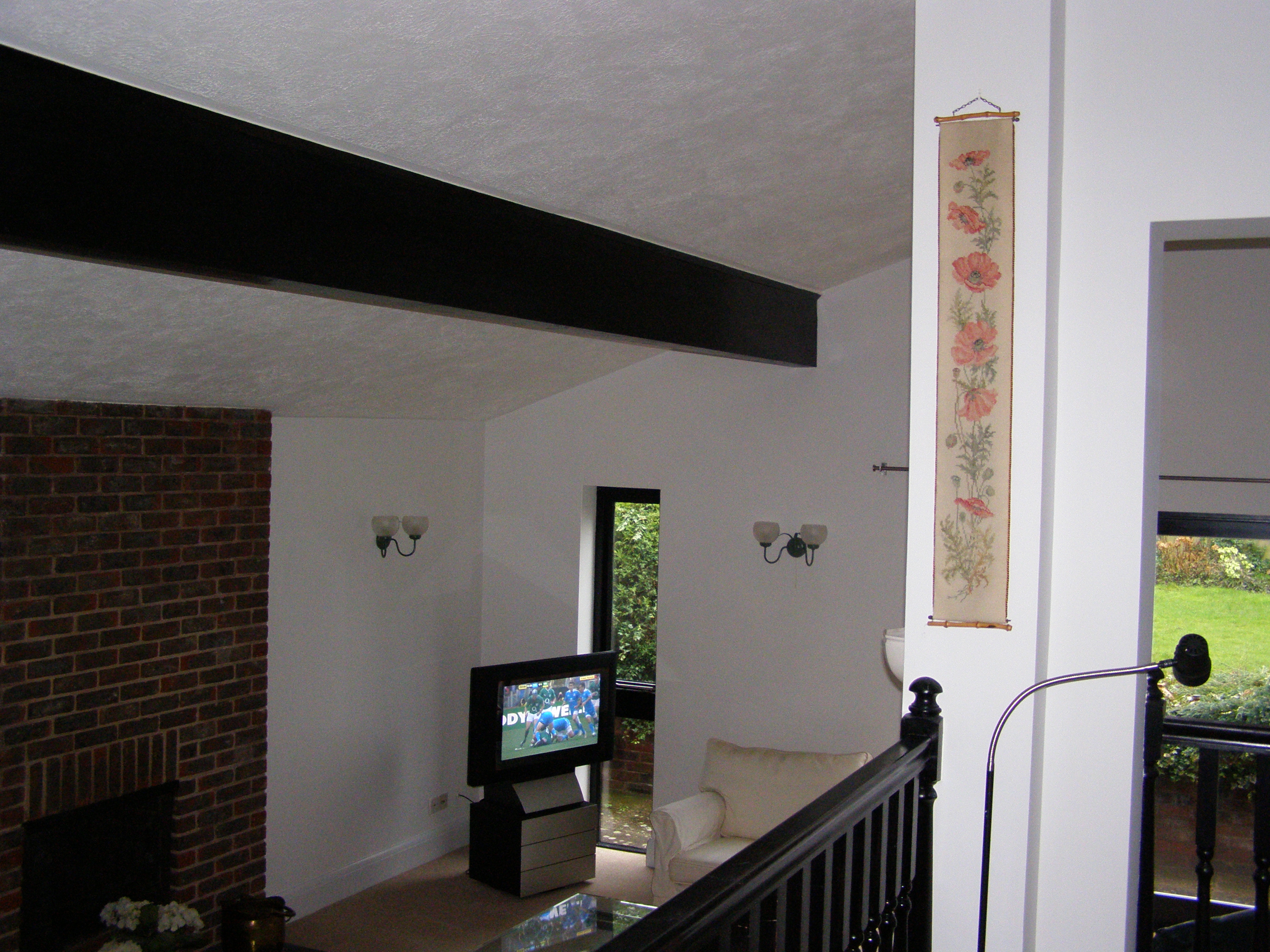 | This charming split level bungalow posed a challenge with its ceiling height. Surfaces were thoroughly cleaned and repaired before applying paint systems from the Sanderson range. | |||||
